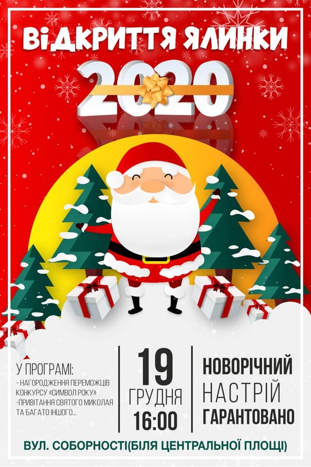 Главную ёлку города традиционно откроют 19 декабря, в День Святого Николая. В связи с ремонтными работами на площади перед районным Домом культуры, которые временно приостановлены, её установят в начале улицы Соборности.